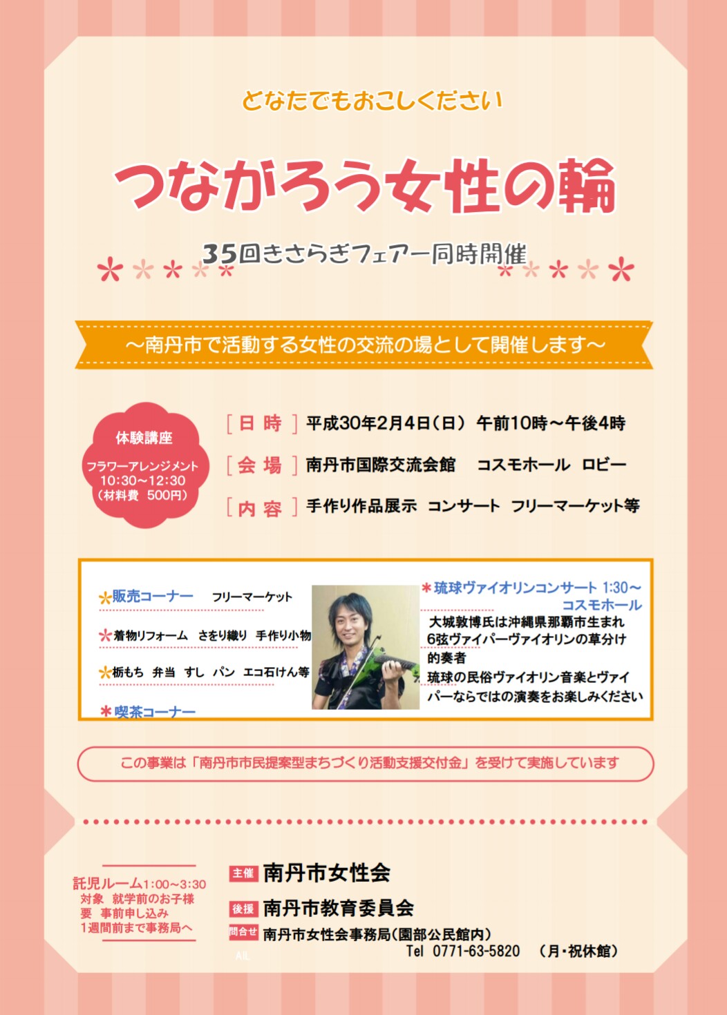 « イベント一覧 このイベントは終了しました。 きさらぎフェア(京都 南丹市) 2018年2月4日(日) @ 13:30 - 15:00 « フェリーさんふらわあ 「アイリッシュ音楽を楽しもう」セッション会(京都 中京区) » つながろう女性の輪 第35回きさらぎフェア 南丹市国際交流会館コスモホール(地階) コンサートは13:30~ どなたでも参加できます(男性もOK)。 カレンダーに追加 Google カレンダー iCalendar Outlook 365 Outlook Live 詳細 日付: 2018年2月4日(日) 時間: 13:30 - 15:00 イベントカテゴリー: ソロライヴ 会場 コスモホール 園部町小桜町62−1 南丹市, 京都府 622-0004 Japan + Google マップ
