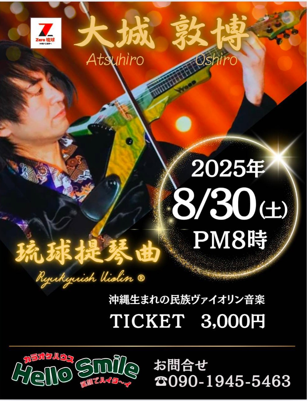フェリーさんふらわあ エンジョイコンサート 2025.12.2.(火) 大阪→別府 12.3.(土) 別府→大阪 出演: 大城敦博:ヴァイオリン / ヴァイパーヴァイオリン 主な演奏内容 #琉球提琴曲 #オリジナル #琉[…]