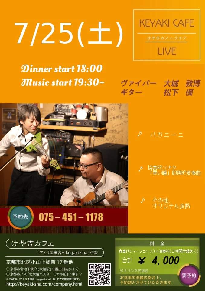 けやきカフェ ライヴ (京都 北大路) Dinner Concert (Kita-Oji, Kyoto)