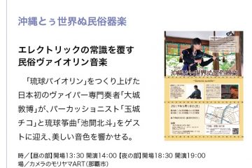 2019年5月18日(土)に那覇市東町のカメラのモリヤマARTで行われたコンサートの様子を沖縄タイムスに掲載いただきました。 ↓イベント内容はこちら 2019沖縄コンサート(那覇)