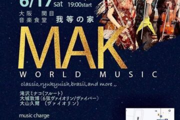 我等の家 MAK ライヴ 2023.6.17.(土) 開場: 18:00 開演: 19:00 出演: MAK 滝沢ミナコ(フルート) 大城敦博(ヴァイオリン/ヴァイパー) 大山久爾(ヴァイオリン) 場所:大阪 関目 音楽[…]
