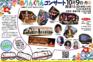 ありんくりんコンサート 日時:2023.10.9(月祝) 開場: 13:00 開演: 13:30 出演: 宇夫方路琉球舞踊研究所 高山正樹 大熊啓 月桃の花 歌舞団 しあわせコーラス 七峰会、鈴木智子研究所 清水亮子 タ[…]