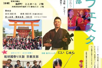 13時開場 14時開演 出演: 琉球國祭り太鼓 京都支部 うた三線 にいじゅん あしびなBand 琉球ヴァイオリン 大城敦博 会場:漁師町ととまーと2階 京都府宮津市漁師町1775番地25 前売り ¥1800- 当日 ¥[…]