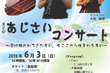 2018年6月3日(日) 14:30開演(14:00開場) あじさいコンサート ~受け継がれてきたもの、今ここから生まれるもの~ クラリネット:谷上真実 ピアノ:松本直子 ヴァイパー:大城敦博 会場:アートサロン空 TE[…]