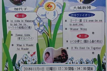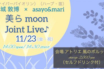 出演: asayo&mari (ハープ&笛) 大城敦博 (ヴァイパー) 会場:風のポルッカ 兵庫県伊丹市 お手数ですが場所の詳細は「風のポルッカ」で検索ください。 チャージ:¥2000-(drink付[…]