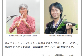 いがりまさし&大城敦博 ~天の原と美ら海の音世界~ 11/5(日)14:30開演(15分前開場) うずらギャラリー 京都市中京区三条通寺町西入 地下鉄京都市役所前から歩5分 前売2500円・当日3000円 予約:070-[…]
