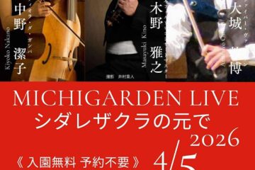日時:2026.4.5.(日) 開演:13:00 出演: 木野雅之:ヴァイオリン (日本フィル ソロコンサートマスター) 大城敦博:ヴァイパーヴァイオリン / ヴァイオリン 中野潔子∶ヴィオラ・ダ・ガンバ 場所:ミチ・ガ[…]