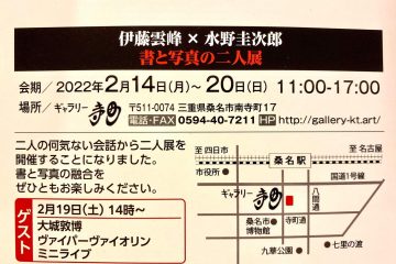 書と写真の二人展 2022.2.14.(月)~2.20(日) 10:00~17:00 にゲスト出演 2/19(土) 14時~ 会場:ギャラリー寺町 三重県桑名市南寺町17 Calligraphy & Photo[…]