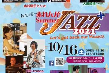 赤レンガJazz+2021 日時: 2021.10.16.(土) 開場: 17:30 開演: 18:00 出演: 18:00 池田カルテット 18:40 大城敦博(ヴァイパーソロ+セッション) 19:20 AM-tria[…]