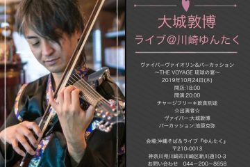 美味しい沖縄そばと音楽の競演♪ 沖縄そば ゆんたく ライヴ パーカッション:池原克弥 ヴァイパー:大城敦博 チャージ:チップ制 会場:沖縄そば ゆんたく 〒210-0013 神奈川県川崎市川崎区新川通10−3