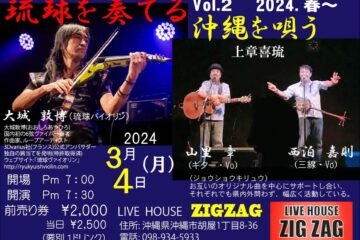 琉球を奏でる 沖縄を唄うVol.2 日時:2024.3.4.(月) 開場:19:00 開演:19:30 出演: ○上章喜琉 山里章:ギター 西泊喜則:唄三線 ○琉球提琴曲 大城敦博:ヴァイオリン & ヴァイパー[…]
