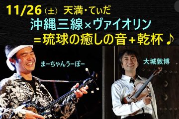 2022.11.26.(土) 開店: 17:00 開演: 19:30 出演: まーちゃんうーぽー:唄三線 とくじろう:パーカッション ブドゥリ太鼓:エイサー&踊り 大城敦博:ヴァイオリン 場所: 奄美・島料理て[…]